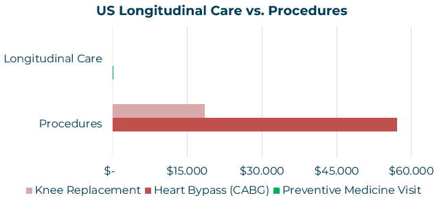 Healthcare Vastly Incentivizes Procedures. Reacting pays far more than Preventing
